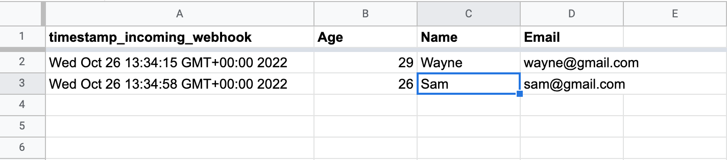 In this example, {{last row 3}} will return "C3", whereas {{last row 3 value}} returns "Sam".