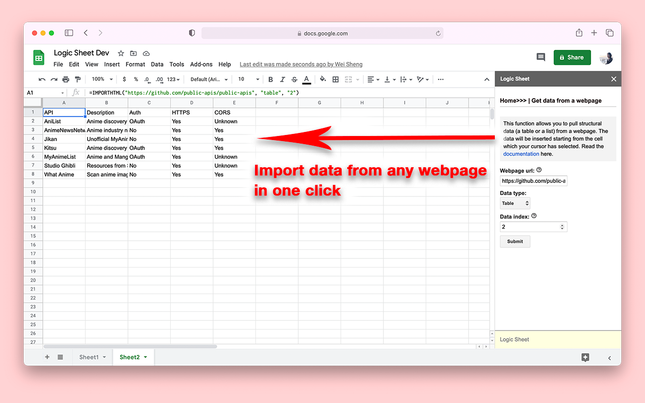 **Data type:** Select the type of desired structured data. It can be a table content or a list on the webpage.
